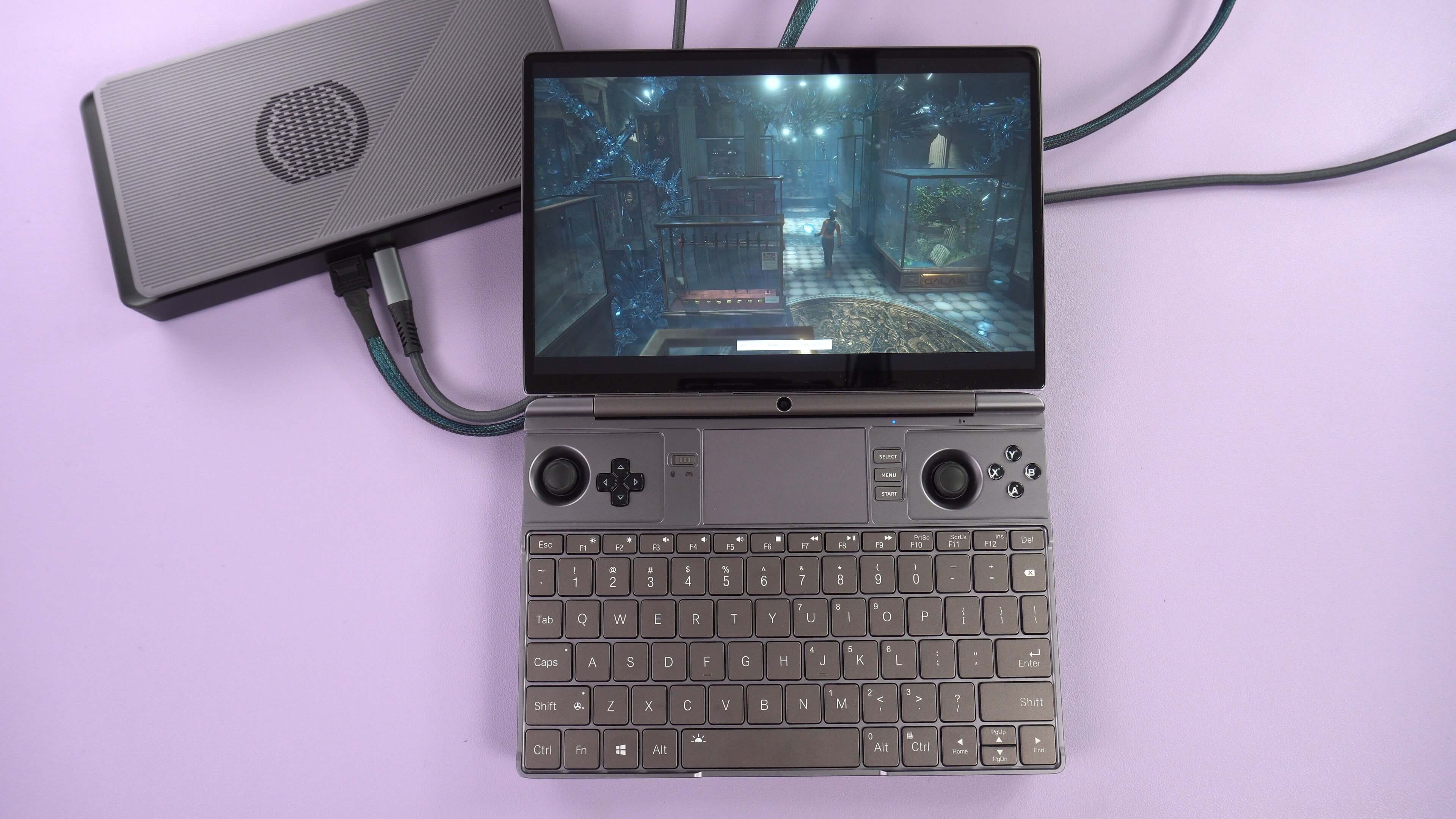 The GPD WIN 4 2024 offers a balanced mix of portability and performance.. Its slide-up design with a 6-inch screen strikes a good compromise between gaming comfort and pocket-friendliness. It features strong gaming performance, often matching the larger WIN MAX 2, and supports both OCuLink and USB4 for versatile eGPU connectivity. The device excels in heat management, maintaining comfortable temperatures even during extended gaming sessions, However, its smaller keyboard may be less suitable for prolonged productivity tasks, and the lack of a built-in webcam could be a drawback for video conferencing on a mini laptop. Read our full GPD WIN 4 2024 review here.