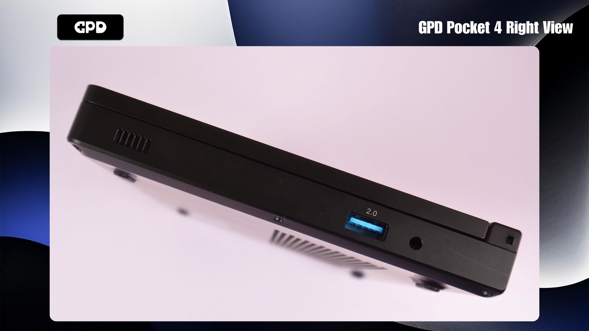 The GPD Pocket 4 excels in connectivity, offering an HDMI 2.1 port and a USB-A 3.2 Gen 2 port on the left side, along with another USB-A port and a 3.5mm audio jack on the right. The back houses a 2.5Gbps Ethernet port, USB-C charging port, a USB4 port for high-speed peripherals, and the modular port system, a defining feature of GPD’s ultra-portable notebooks.