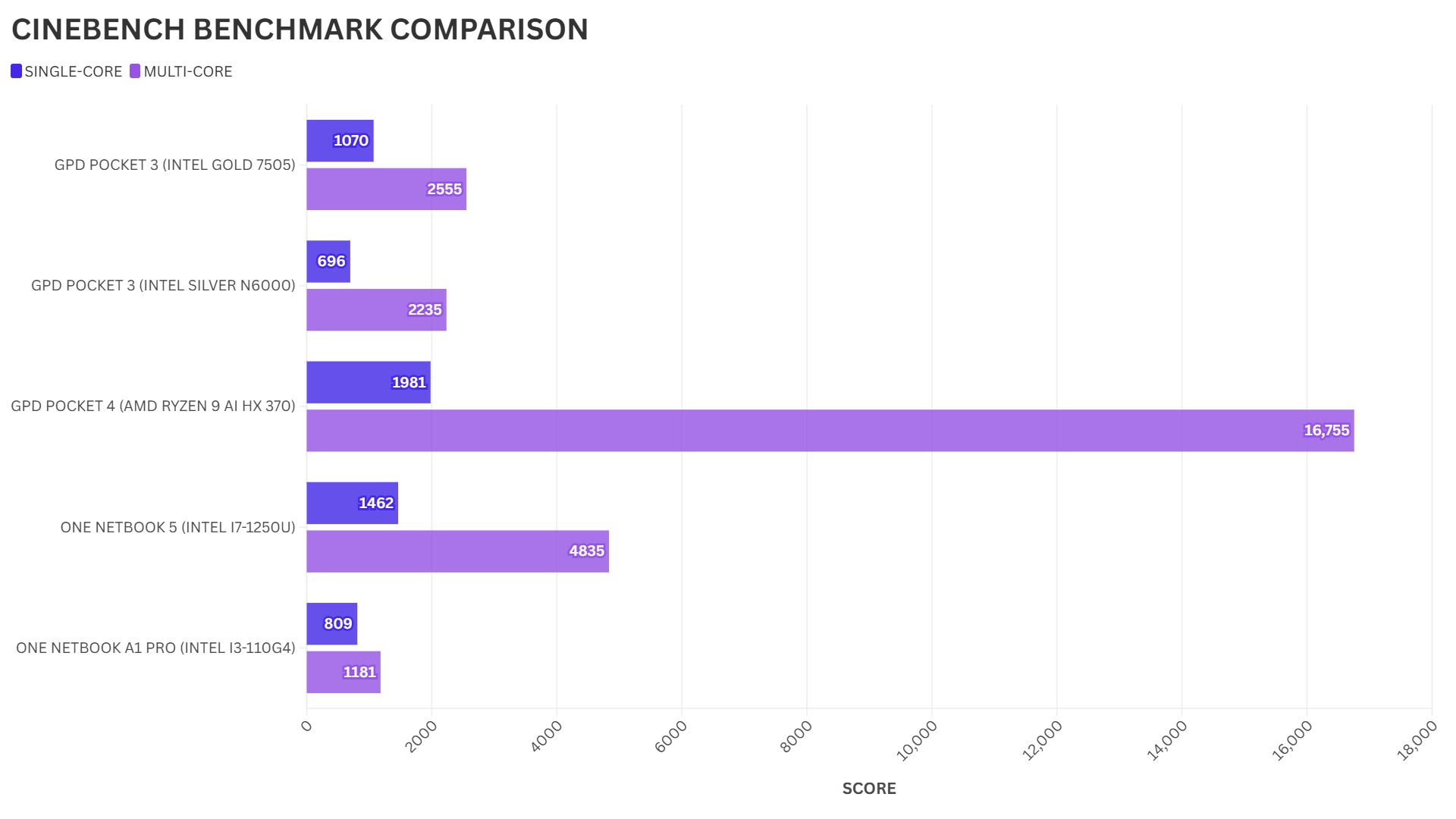 Given that both the GPD Pocket 4 and the Duo are pre-production models, the benchmark results exhibit a mix of wins and losses for each. Nevertheless, the Pocket 4 demonstrates strong performance as a laptop for business, particularly when compared to earlier 8840U-based devices. With final production models and optimized drivers, we anticipate even better and more consistent results in the future.