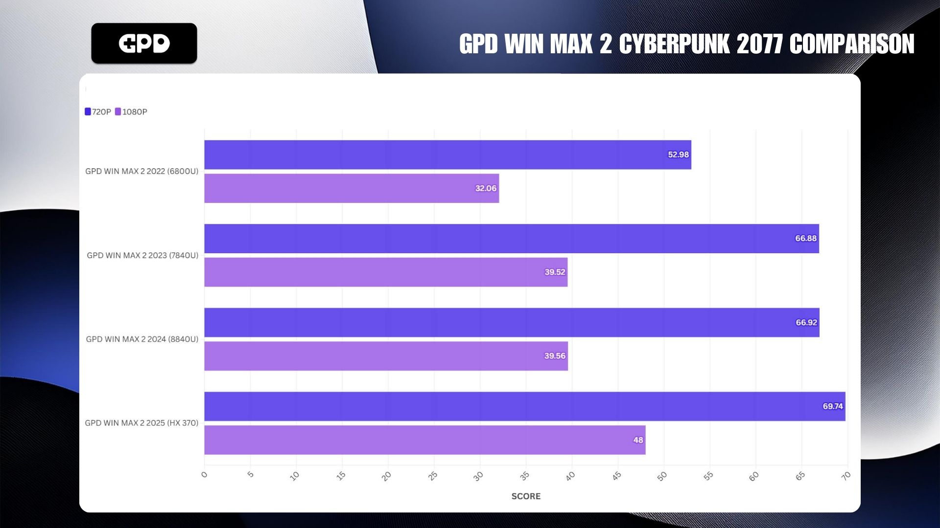Our GPD WIN MAX 2 2025 review includes direct comparisons with earlier WIN MAX 2 releases (6800U to 8840U) and other HX 370-based devices. Below are the benchmark results: