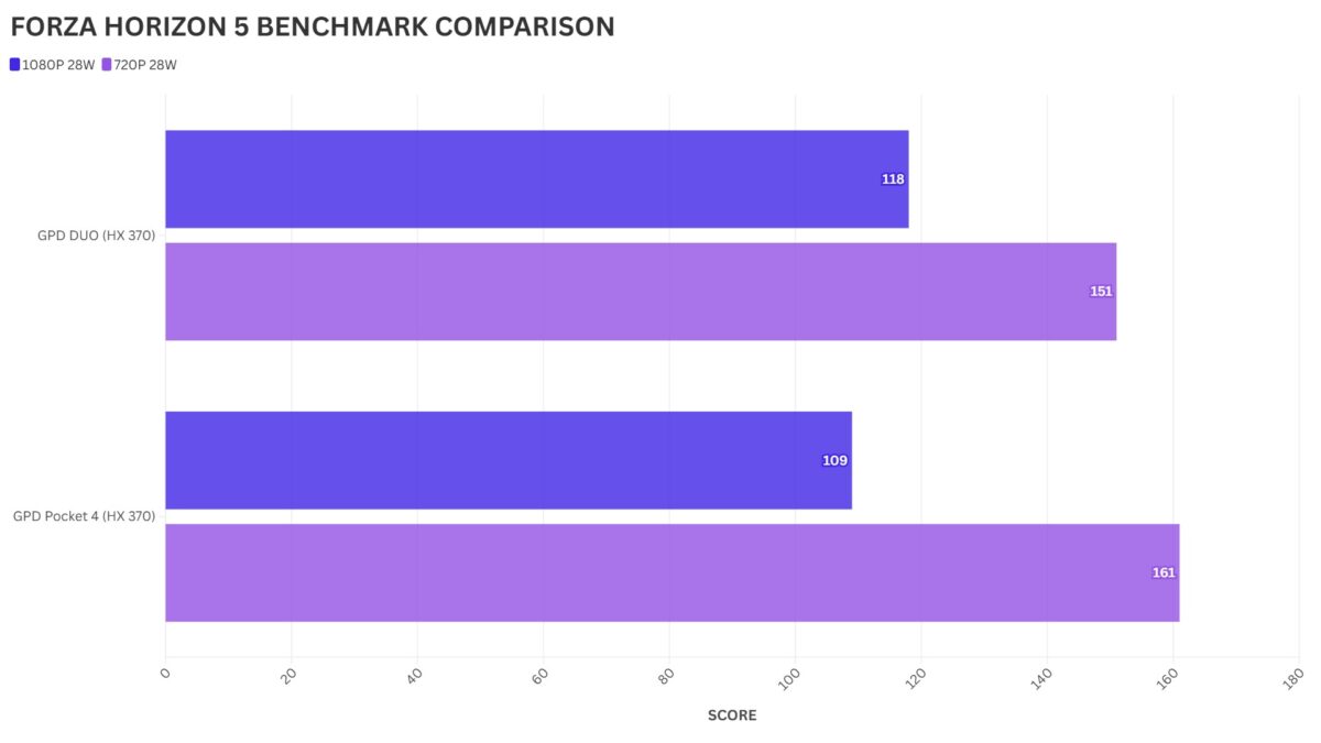 Ve spojení s volitelnou dokovací stanicíGPD G1 eGPU dosahují obě zařízení výkonu 108 TOPS umělé inteligence, což zvyšuje možnosti úloh náročných na zdroje. Přestože se nejedná o herní notebooky, zvládnou moderní hry s rozumným nastavením a spustí tituly jako Forza Horizon 5 v rozlišení 1080p High s FSR pro plynulé hraní s více než 60 FPS.