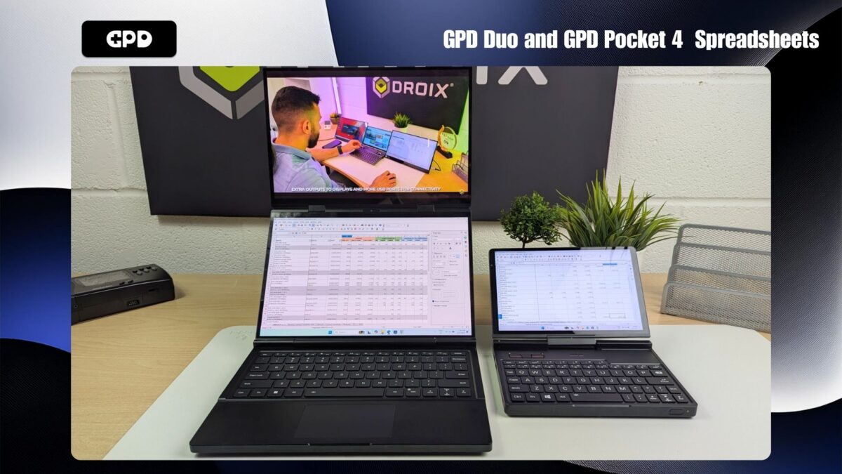 Both devices support up to three external monitors such as the DROIX PM14 portable monitor via HDMI and USB-C ports, a valuable feature for multitasking professionals. The GPD Duo adds an edge with its built-in second display, bringing the total to five active screens for those needing expansive workspaces.
