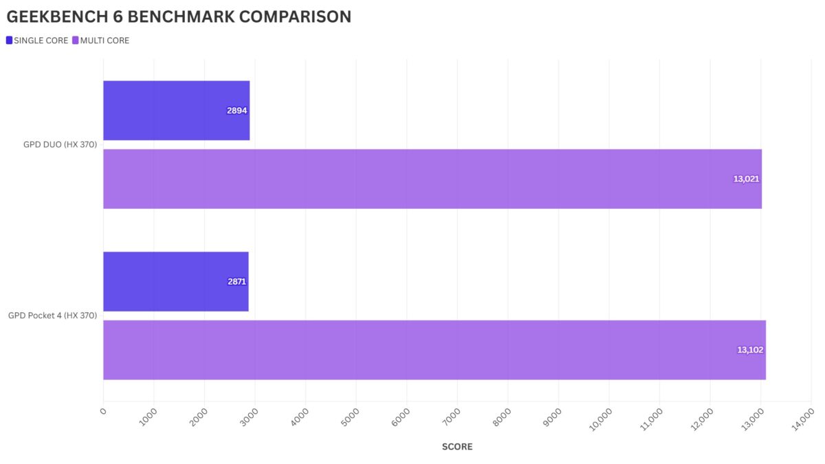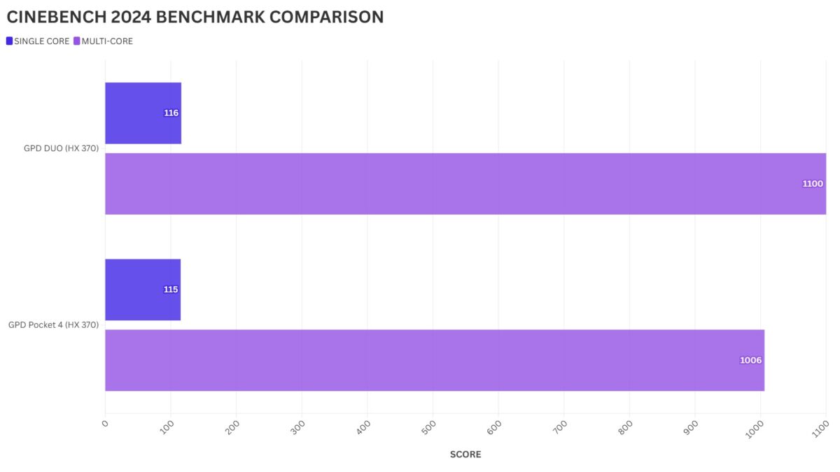 V benchmarcích, jako je Time Spy a Night Raid, si Duo a Pocket 4 vedly podobně, s nepatrnými rozdíly v testu Fire Strike.