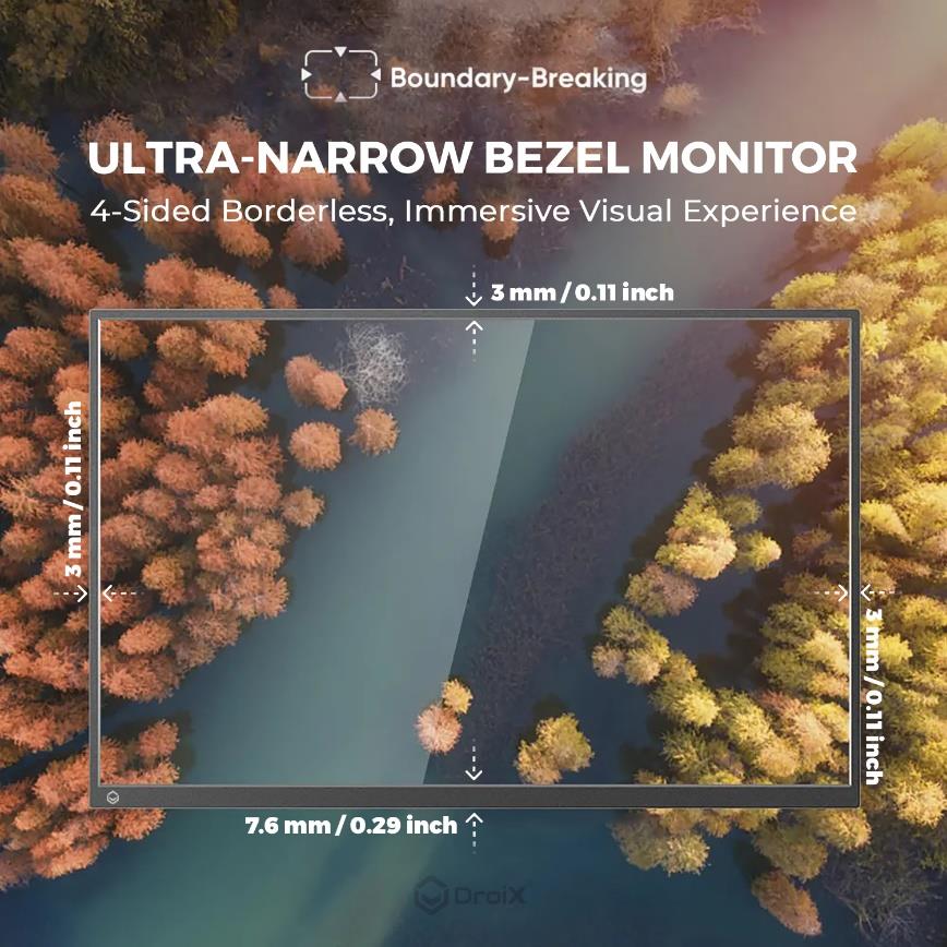 DroiX PM13 je elegantní a lehký 13″ přenosný monitor s rozlišením 2K, který váží pouhých 494 gramů. Je zasazen do tenkého hliníkového rámu a má velmi tenké rámečky o velikosti 0,11″, takže mistrovsky spojuje styl s pohodlím. Živý displej IPS nabízí syté barvy a rozsáhlý pozorovací úhel 170 stupňů, což přináší úchvatný vizuální zážitek. Díky kompatibilitě zahrnující řadu zařízení prostřednictvím rozhraní HDMI a USB-C je PM13 dokonalou univerzální obrazovkou pro vylepšení vaší sestavy, ať jste kdekoli.