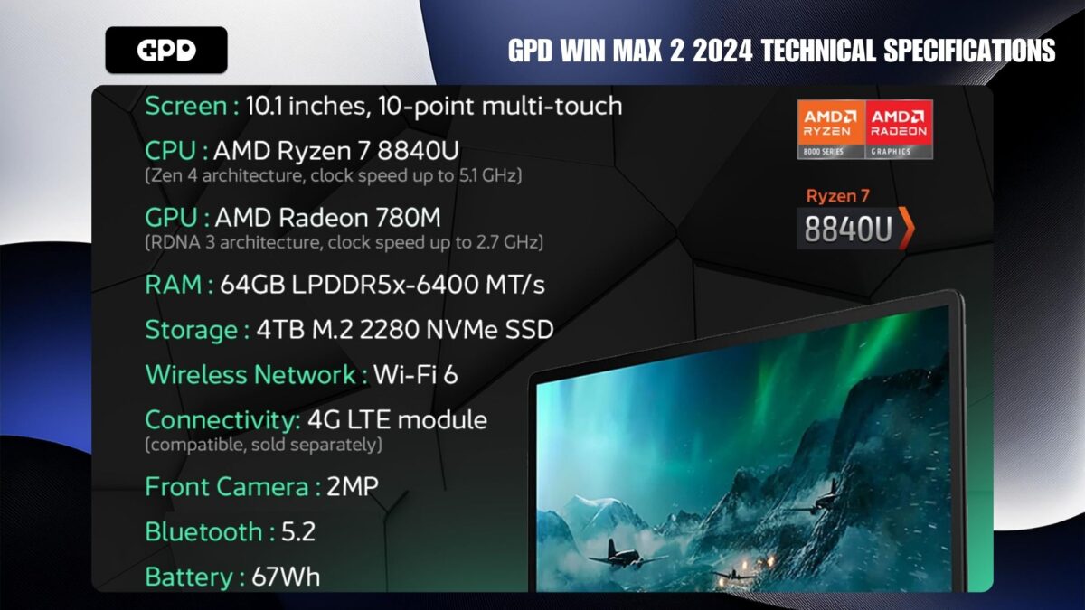 Der Vergleich zwischen dem GPD WIN 4 2024 und dem GPD WIN MAX 2 2024 zeigt, dass beide Geräte auf Leistung getrimmt sind. Beide sind mit AMD Ryzen 7 7840U Prozessoren ausgestattet, die über 8 Kerne, 16 Threads und Taktraten von bis zu 5,1 GHz verfügen. Die integrierte Radeon 780M GPU verbessert die Gaming-Fähigkeiten weiter und sorgt für flüssige Bildraten und hochwertige Grafiken für moderne Spiele.
