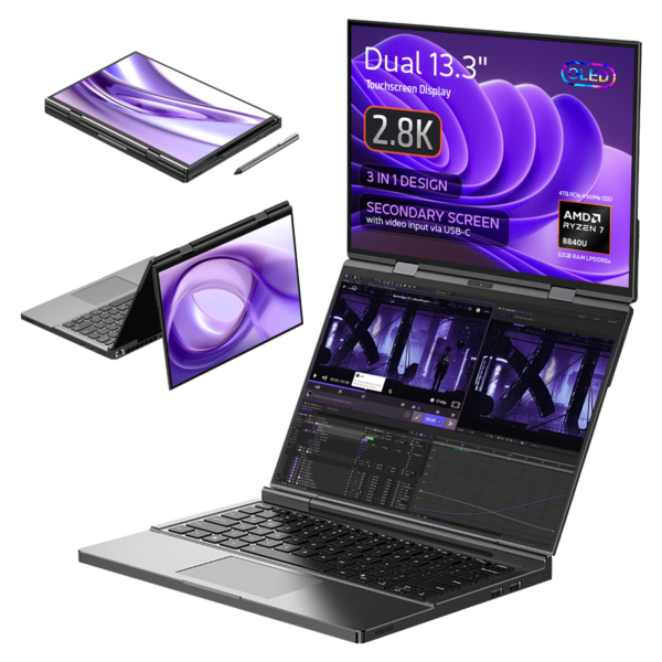 Die beiden OLED-Bildschirme des GPD Duo setzen neue Maßstäbe im Bereich der tragbaren Computer und bieten unübertroffene Flexibilität und Präzision für Produktivität und kreative Arbeit. Ganz gleich, ob Sie mehrere Aufgaben verwalten, detaillierte Entwürfe erstellen oder Präsentationen halten - die innovative Dual-Bildschirm-Konfiguration des GPD Duo ist ein leistungsstarkes Werkzeug, das Ihre Arbeit und Kreativität fördert.