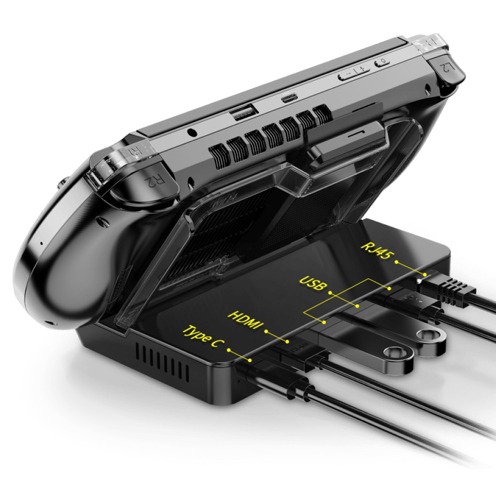 Mit der GPD WIN 4-Dockingstation können Sie Ihr Handheld-Gaming-Erlebnis auf ein Desktop-Niveau heben. Dieses unverzichtbare Zubehör erweitert nicht nur Ihre Konnektivitätsoptionen, sondern verbessert auch die Funktionalität Ihres Geräts und verwandelt es in einen voll ausgestatteten Desktop-PC.