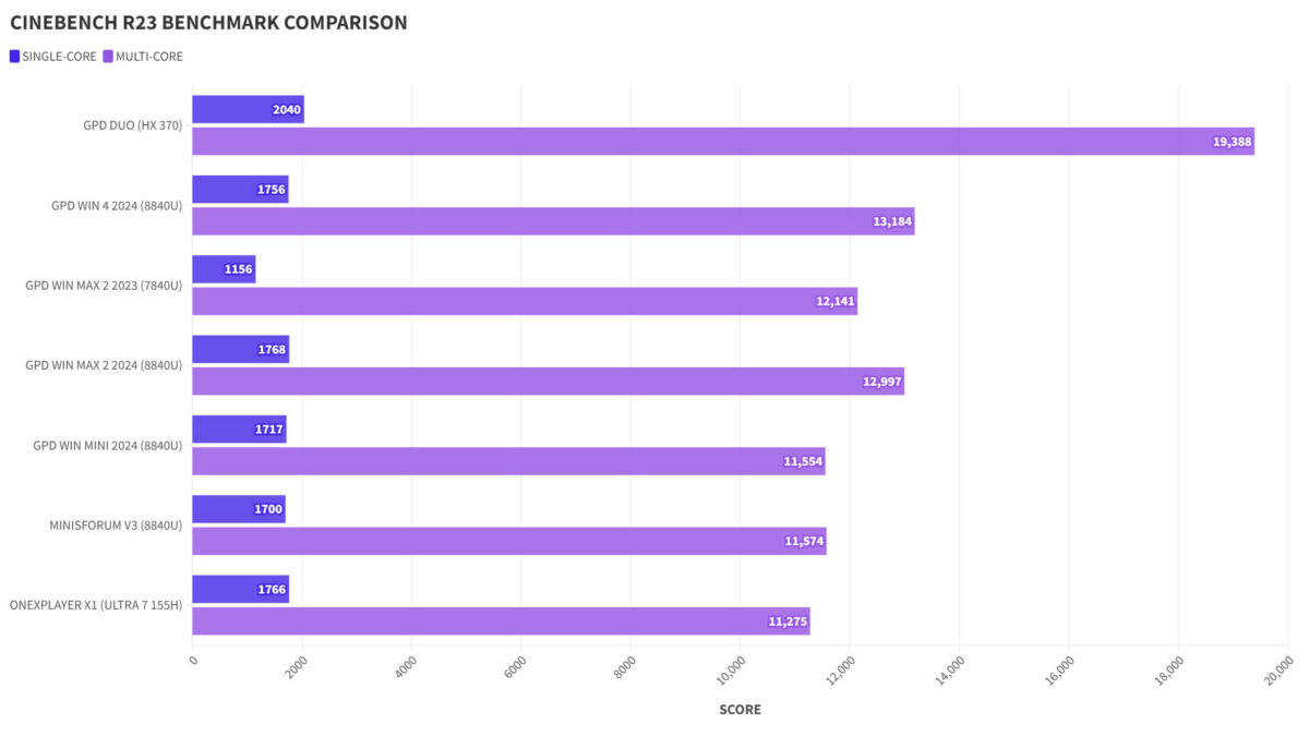 GPD Duo CINEBENCH R23 Benchmark Comparison