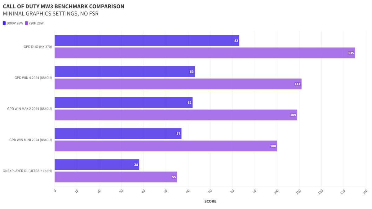 GPD Duo CoD MW3 Benchmark Comparison