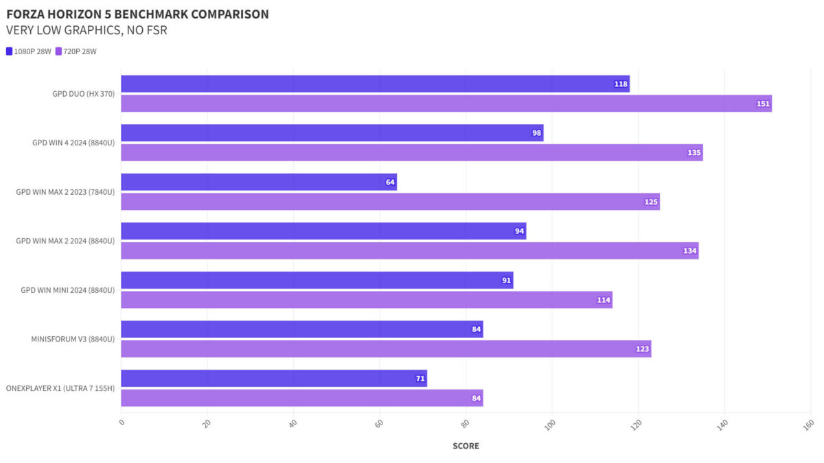 GPD Duo FORZA HORIZON 5 Benchmark Comparison
