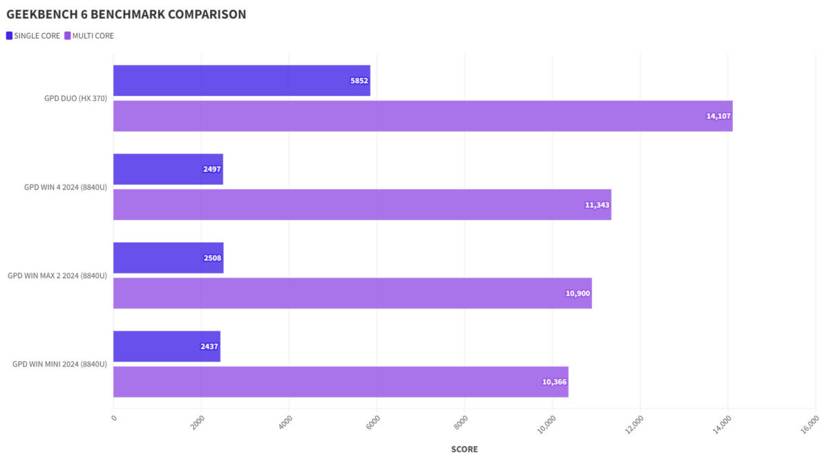 GPD Duo GEEKBENCH 6 Benchmark Comparison