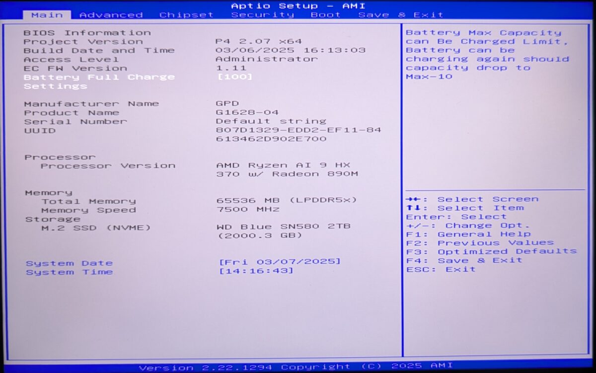 GPD Pocket 4 HX 365 and GPD Pocket 4 HX 370 CPUP4(370_365)_BIOS.V2.10_EC.V1.13_250627.rar