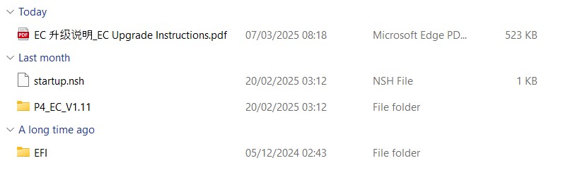 The second part of the process is to update the EC firmware. Enter the P4_EC.Vx.xx folder and copy all of the contents to your USB flash drive