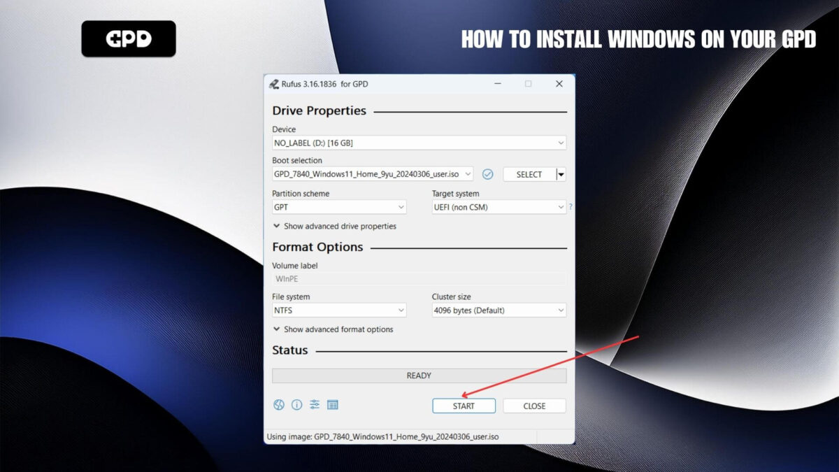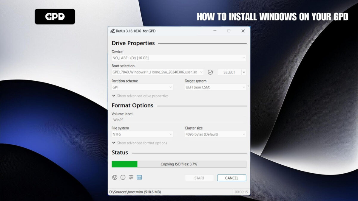 Hi – the instructions have an ISO as the item to use in Rufus, but the download for the GPD Pocket 3 1195G7 is a zip file. How can I use that zip file with Rufus or should I use that zip to create an ISO before creating the bootable media?