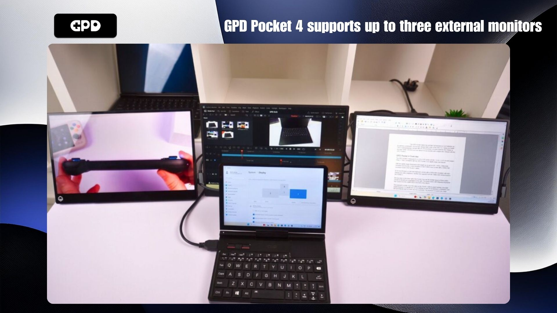 दोनों डिवाइस HDMI और USB-C पोर्ट के ज़रिए DROIX PM14 पोर्टेबल मॉनिटर जैसे तीन बाहरी मॉनिटर तक सपोर्ट करते हैं, जो मल्टीटास्किंग पेशेवरों के लिए एक उपयोगी विशेषता है। GPD Duo अपने बिल्ट-इन दूसरे डिस्प्ले के साथ एक और बढ़त जोड़ता है, जिससे बड़े कार्यक्षेत्र की ज़रूरत वाले लोगों के लिए कुल पाँच सक्रिय स्क्रीन हो जाती हैं।