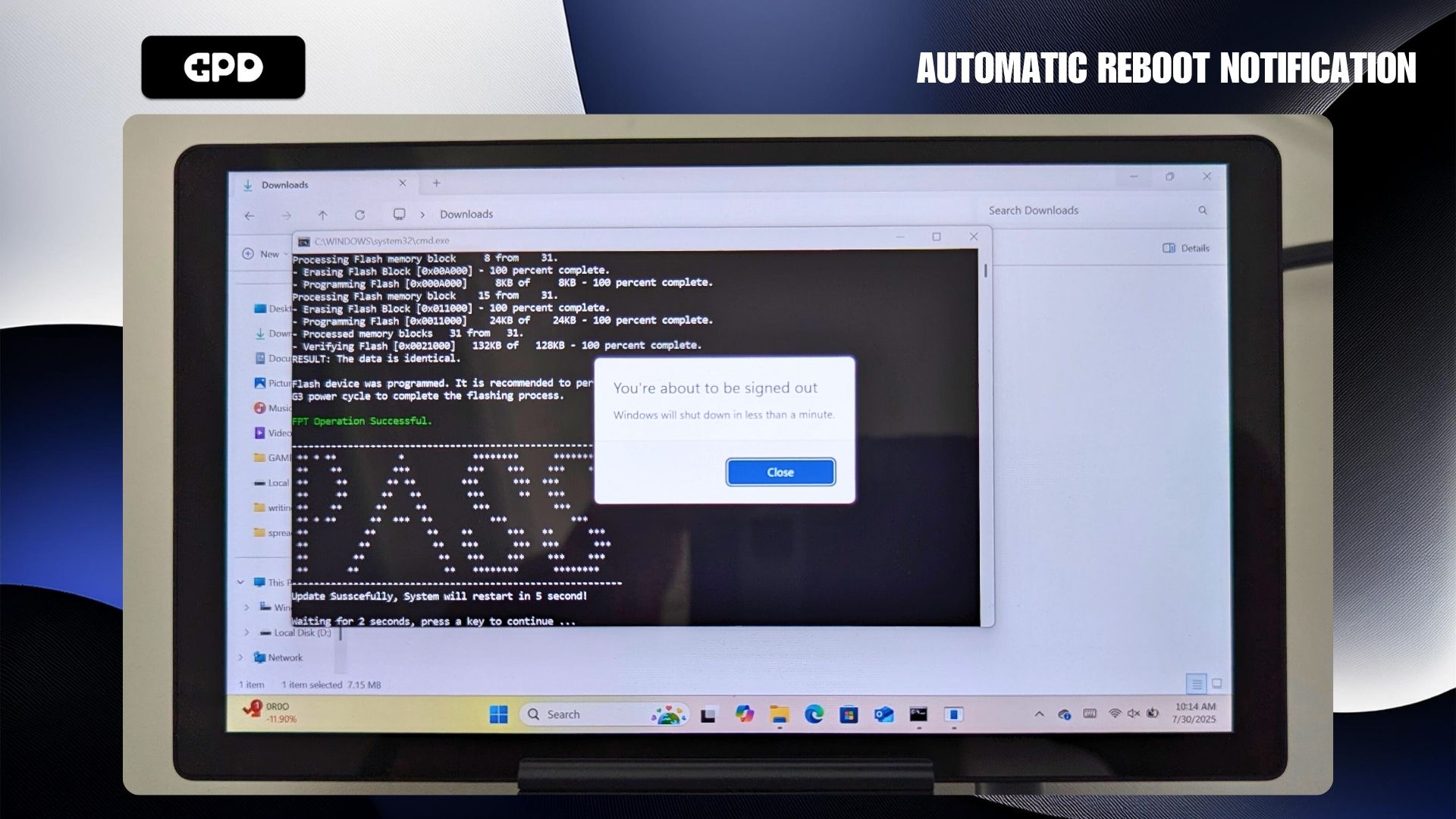 Before starting the installation, ensure your GPD MicroPC 2 is fully charged and plugged into the power adapter. We also advise closing any open software, as the device will restart automatically once the update is done.