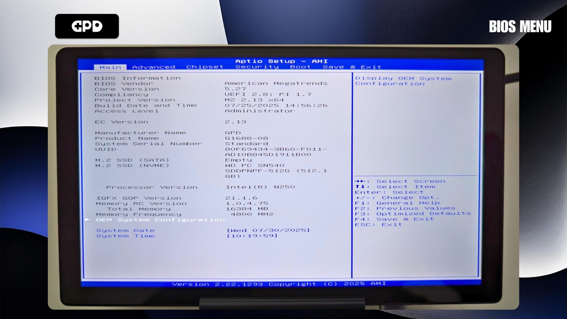 After downloading, extract the contents of the .zip file. You should see a file named something like BIOS_M2_V2.16_GPD.exe, although the version numbers may differ.