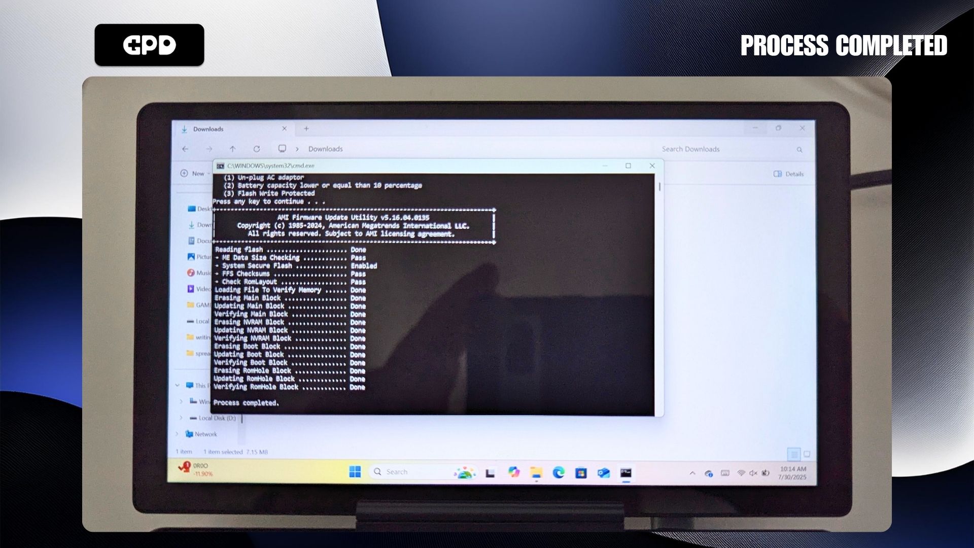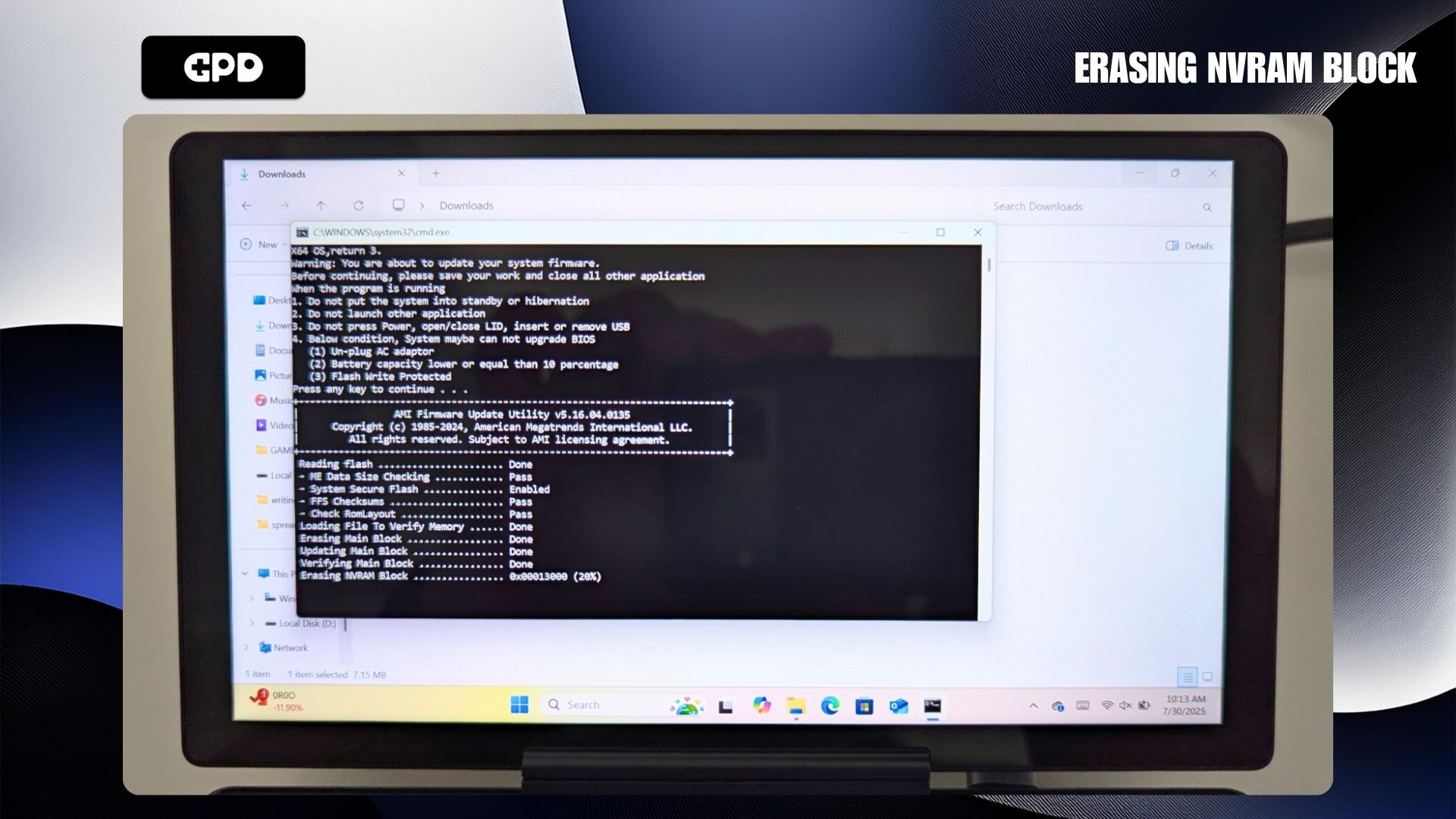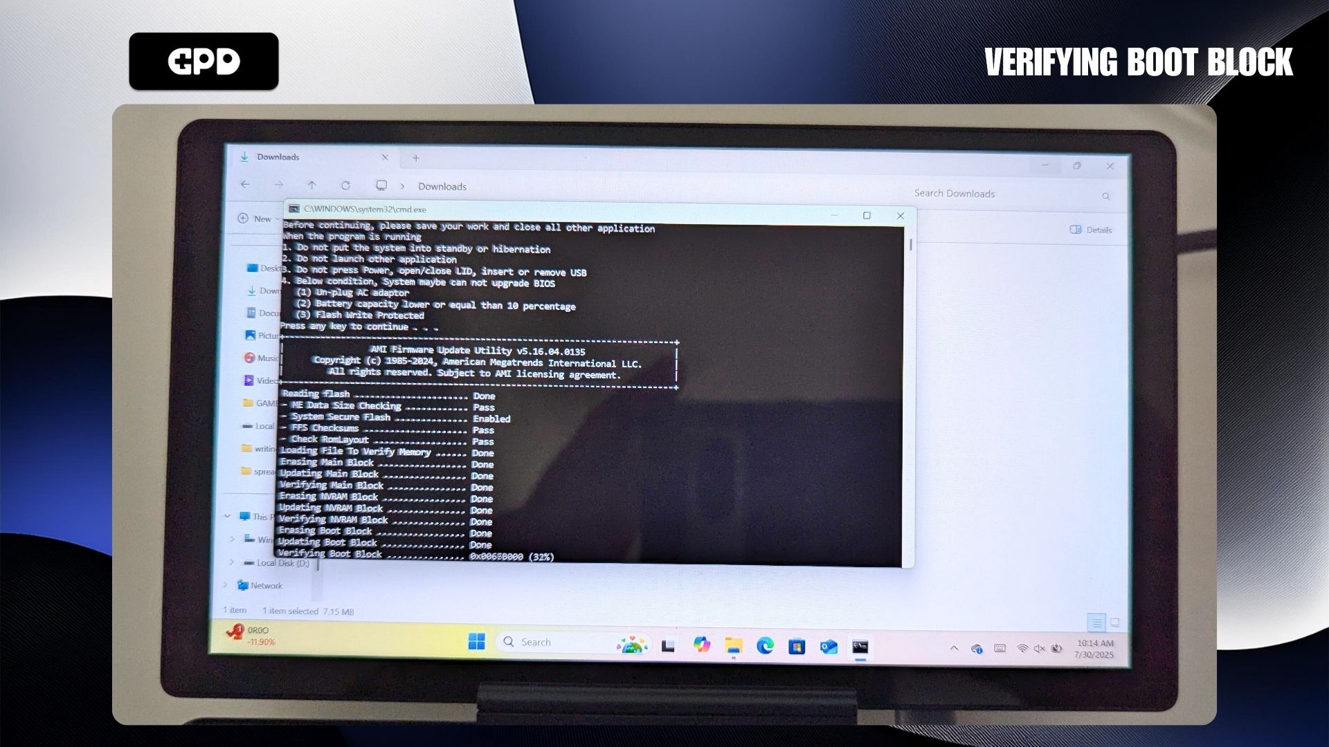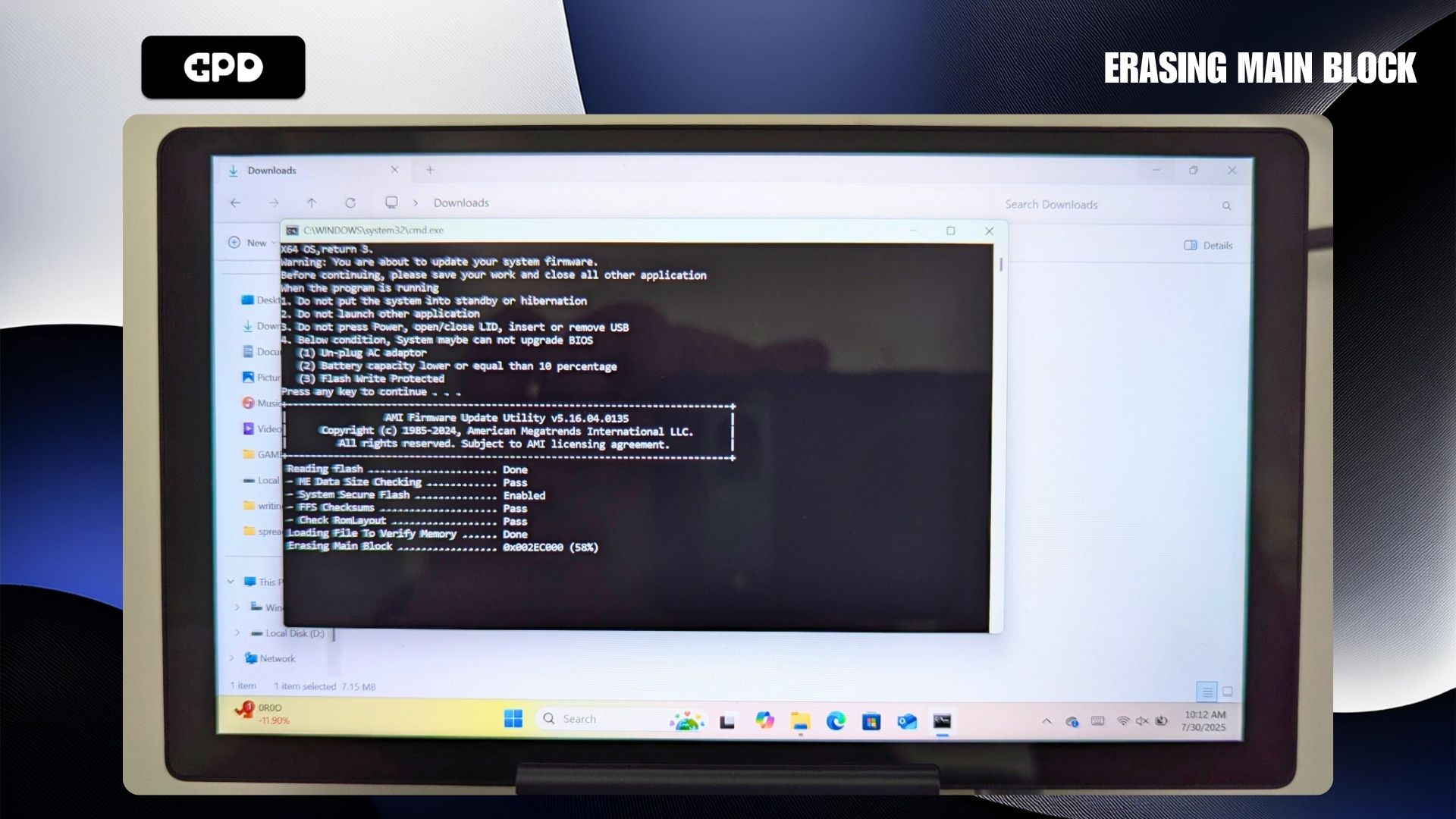 First, you’ll need to get the GPD MicroPC 2 BIOS update here. Be aware that some antivirus programs might incorrectly flag the file as a threat because its purpose is to modify the system’s BIOS.