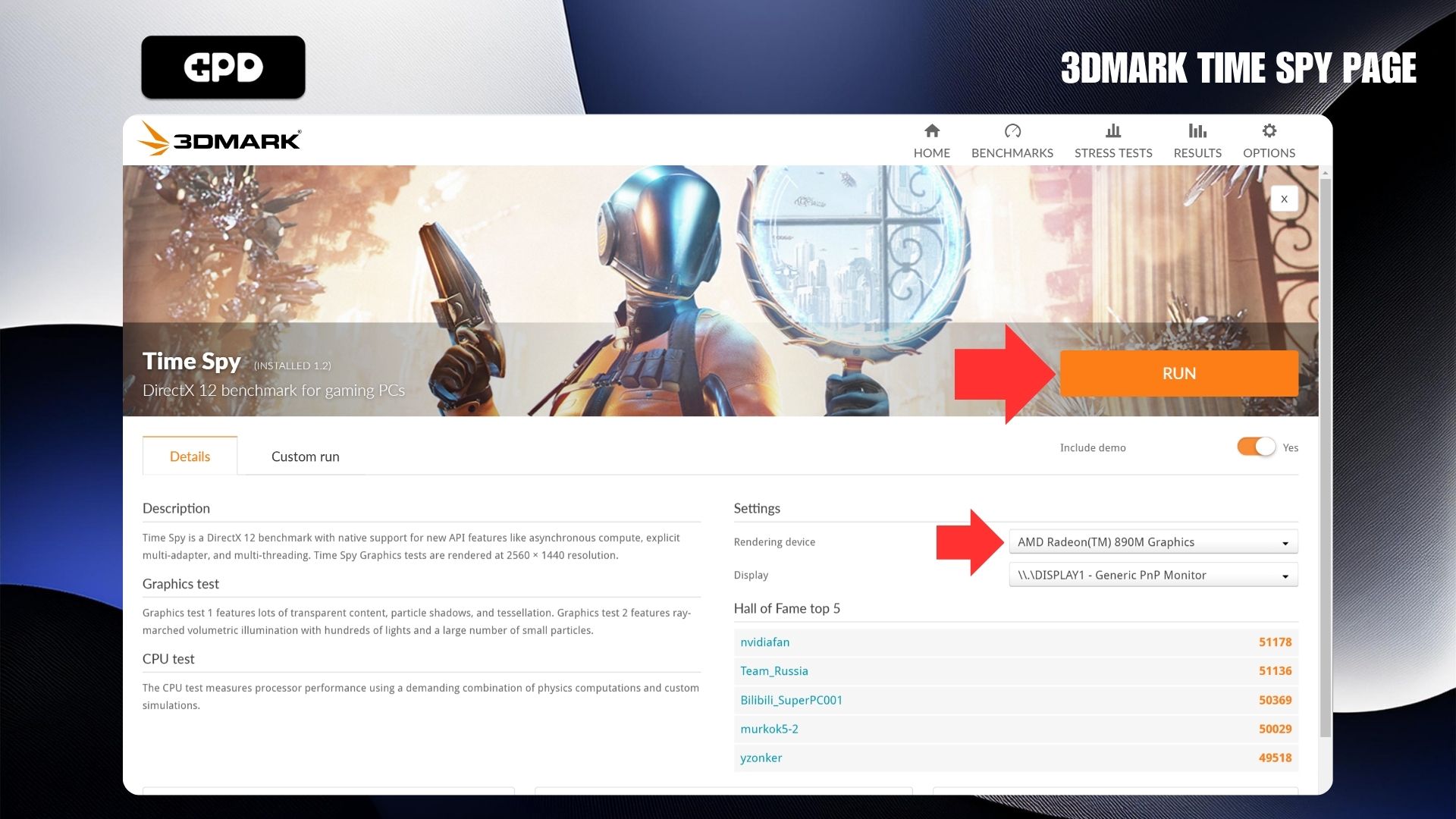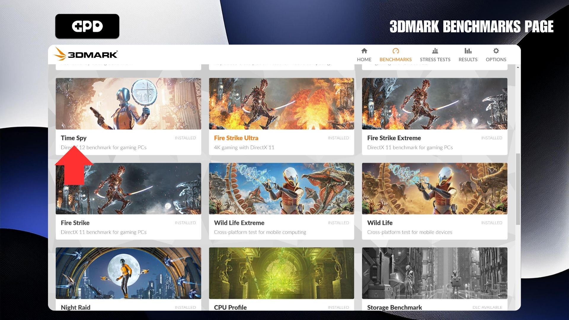 Scroll down the list and locate the Time Spy (not Time Spy Extreme) benchmark and click on that.