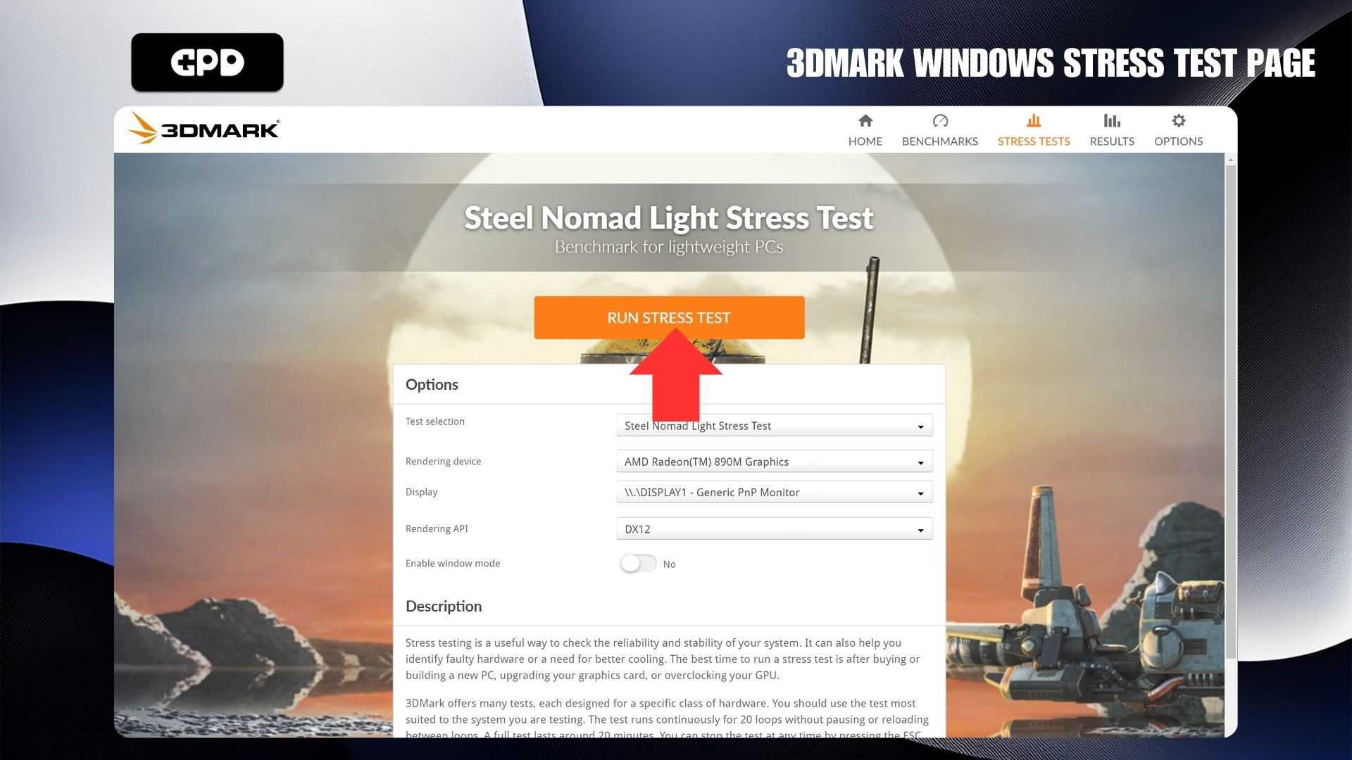 Before proceeding, ensure that the “Steel Nomad Light Stress Test” option is chosen. Double-check that the appropriate GPU is selected for the assessment; this will usually be the integrated GPU within your handheld device, unless you are specifically evaluating the performance of an external graphics card. To initiate the stress test, click on the “Run Stress Test” icon. This testing procedure typically lasts for approximately 20 minutes.